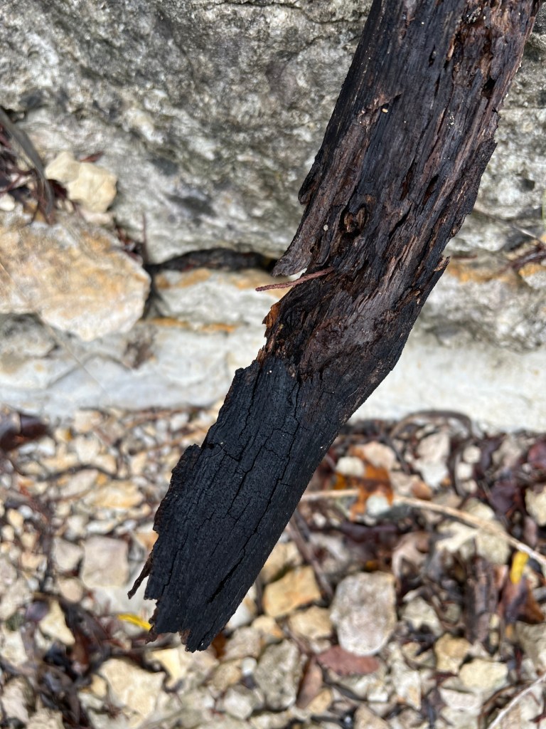 The branch not only does not resemble a Lepidodendron in any way but looks fairly modern and appears to be resting in wet, loose mud that has settled in several gaps on its surface. As opposed to the 2021 find, which was clearly inset in a stone matrix, the case is not so clear with the 1987 find. Additionally, the branch seems to be black or very darkly colored, with Helfinstine and Roth likely using the color as a diagnostic since Lepidodendron is often found in coal beds. However, if this were a modern branch resting in wet, unconsolidated marl, this discoloration is exactly what one might expect to see. Wood can easily take on a dark or black appearance when it becomes water-logged or begins to rot, and the mineral-rich water and saturated mud of the Paluxy provide just the ingredients necessary for this type of discoloration to occur. (Fig.6, Fig. 7)